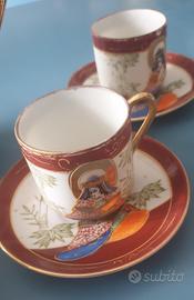 Servizio da caffè vintage Japan 1950 in antica porcellana giapponese, decorato a mano composto da una teiera/caffettiera con quattro tazzine. Pezzo da collezione.