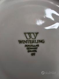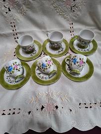 SERVIZIO DA CAFFÈ VINTAGE COMPOSTO DA SEI TAZZINE CON PIATTINO DIPINTE A MANO FIRMATE ERIKA MARCA. WINTERLING. . BAVARIA.