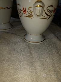 Antico set da tavola probabile francesi o europei , in porcellana bianca con decori floreali e bordo in oro zecchino. Composto da una caraffa per il caffè, una caraffa per il the e due zuccheriere forse una per lo zucchero semolato e l altra per quello a zollette. Tutto come da foto