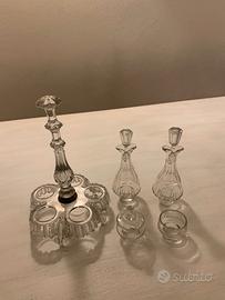 Antico Servo Centro Tavola in cristallo per olio - aceto -spezie, finemente lavorato e sfaccettato.