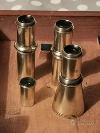 Antico, originale e grande sestante nautico in ottone, marchio “Henry Hughes & Sons Ltd London” serie n. 5100, prodotto a Londra nel 1880 circa, ed utilizzato dalla Marina militare britannica. Stupendo e raro strumento, corredato della sua scatola originale in mogano e degli accessori (manca soltanto un filtro opzionale per cannocchiale), ancora in ottime condizioni. Henry Hughes & Sons fu una importante ditta inglese produttrice di sestanti ed altri strumenti scientifici di elevata qualità. Tutto il telaio in ottone, ad eccezione dell’arco graduato, presenta una laccatura protettiva colore antracite. Lo strumento è in ottime condizioni generali; sono presenti ed integri tutti i componenti (cannocchiale, specchietti, filtri, ecc.), pertanto il sestante è perfettamente idoneo all'uso cui è preposto. Per un corretto utilizzo, tutti i sestanti necessitano di una serie di correzioni, che possono essere determinate dall’osservatore, come descritto in letteratura tecnica, oppure da un ente autorizzato che rilascia una certificazione. La scala del sestante è di 60° reali ma è graduata in maniera più che doppia (150 gradi) in modo da leggere direttamente il doppio dell'angolo formato dai due specchi. Dimensioni interne della base della scatola in mogano: 20,5 cm x 22 cm. Dimensioni esterne della scatola in mogano: 23 x 24,5 x 12,5 cm.