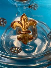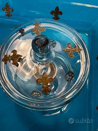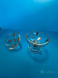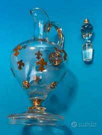 Set in vetro finemente decorato in oro zecchino, seconda metà 1800 ? Probabilmente usato in chiesa per la intinzione delle ostie nella comunione misure del vassoio 30cm x 20cm x 4cm