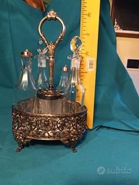 Antico Set Oliera / Menage da Tavola con Bottiglie Originali – Elegante Stile Liberty / Inizi ‘900