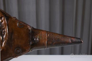 La decorazione manuale e la qualità dei materiali lo rendono un pezzo dal forte carattere, ideale per collezionisti o per chi ricerca accessori autentici dal sapore antico.