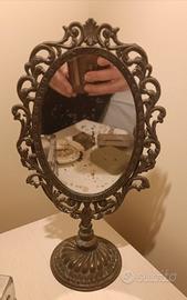 Antico specchio da tavolo in metallo lavorato, in ottime condizioni nonostante gli anni Altezza 27 cm Vendo euro 30 Consegna a Roma oppure spedisco