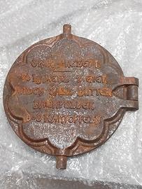 Antico stampo per waffel di fabbricazione tedesca. È in ghisa ed è in buone condizioni, considerando la sua età.