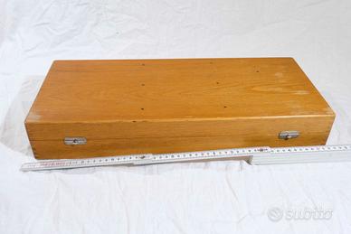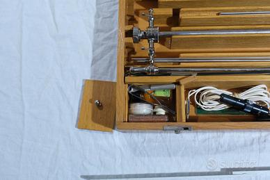Strumento medico degli anni 50. Si tratta di un elettro resettore Richard Wolf di medicina e biologia. Il kit è composto di una scatola di legno composta da varie comparti e sezioni, contenente lampadine per endoscopia, un cavo elettrico rivestivo di plastica bianca e altri accessori a forma tubolare in acciaio. Il kit è completo è pari al nuovo e mai usato . Misure: 52cm x 22cm x 8,5cm - La spedizione costa 5 euro - Accetto pagamento con Postepay o Paypal