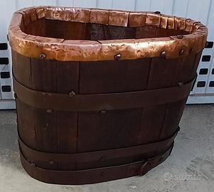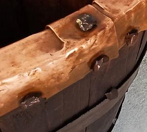 Antico e stupendo contenitore in legno di rovere utilizzato un tempo per le vinacce interamente fatto a mano e assemblato mediante antichi chiodi anch'essi forgiati a mano; la parte superiore è stata rinforzata con uno strato di rame anch'esso battuto a mano con chiodi forgiati. A forte spessore anche gli anelli di tenuta in ferro forgiato. Dimensione cm.40x30x30h. massiccio e molto pesante. In gran patina d'epoca e ottimamente conservato, l'elevata qualità del legno lo rende anche inattaccabile da tarlo o altri insetti. OTTIMO ANCHE COME RINFRESCATORE PER BOTTIGLIE! Accetto anche possibili scambi con altri oggetti di mio maggiore attuale interesse, solo oggetti per cui è consentito il libero possesso per collezionismo privato! Astenersi affaristi, approfittatori di ogni genere e grado! Annuncio esclusivamente rivolto ad appassionati come il sottoscritto.
