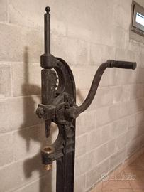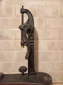 Antico tappabottiglie manuale in ferro. Su un lato è stampato “F.lli Borello Asti”. La tappatrice in ferro e ottone, funzionante, è montata su una panca in legno con piedini in ferro. Oggetto da collezione e/o da esposizione in un'enoteca/cantina. Dimensioni: lunghezza 101 cm., altezza seduta 41 cm, altezza totale 137 cm, larghezza min. 20-max 29 cm. Disponibile per ulteriori foto. Si trova in zona Saluzzo (CN). Ritiro e trasporto a carico dell’acquirente.