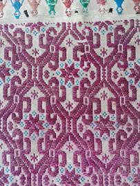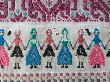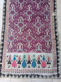 bordatura decorata con figure umane stilizzate che sembrano danzare tenendosi per mano