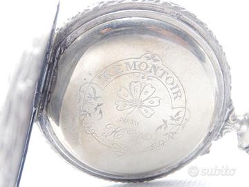 Antico orologio da TASCA primi del 900 con quadrante in ceramica , vetro minerale e lancette lavorate . Movimento meccanico a carica manuale . Fondello interno decorato . Cassa interamente lavorata con scena di caccia in rilievo sul retro . Diametro cassa mm 53 . L'orologio e' in buone condizioni come da foto e funzionante .