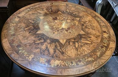 VENDO PRIVATAMENTE ELEGANTE RARO ANTICO TAVOLO DI ALTA EBANISTERIA IN STILE BIEDERMEIER MOLTO D'EFFETTO UTILIZZABILE PER UN SALOTTO SALA PRANZO COME TAVOLO DI RAPRESENTANZA PER HALL NEGOZI, UFFICI NELLA PARTE SUPERIORE SONO PRESENTI RARI INSERTI IN RADICA e INTARSI IN PREGIATI LEGNI DI NOCE EBANO ACERO ULIVO NELLA PARTE INFERIORE FINI SCULTURE STEMMI NOBILIARI ARALDICI RESTAURATO e IN PERFETTE CONDIZIONI COME DA FOTO MISURE 112 CM DI DIAMETRO 73 CM DI ALTEZZA QUESTO MOBILE E' DEPOSITATO IN UN MAGAZZINO IN UN CENTRO COMMERCIALE NELLA CITTA' DI FOSSANO (CN) ALL'USCITA DEL CASELLO AUTOSTRADALE DI FOSSANO SULL' AUTOSTRADA TORINO SAVONA ED E' VISIBILE SOLO e ESCLUSIVAMENTE CON APPUNTAMENTO CONCORDATO INSIEME CON CHIUNQUE SIA REALMENTE e SERIAMENTE INTERESSATO ATTENZIONE SONO UN PRIVATO e TUTTA LA MERCE CHE PROPONGO PROVIENE DA EREDITA' DELLA MIA FAMIGLIA NON SONO UN COMMERCIANTE NON HO UN NEGOZIO NON VENDO ONLINE NON FACCIO SPEDIZIONI QUINDI CORTESEMENTE PER CORRETTEZZA e SERIETA' RECIPROCA E' MOLTO IMPORTANTE CHE LA MERCE SOPRA DESCRITTA SIA VISIONATA PERSONALMENTE DAGLI INTERESSATI PRIMA DELL'ACQUISTO GENTILMENTE NON CHIEDETE ULTIMI PREZZI SCONTI e NON FATE OFFERTE PRIMA DI AVER VISTO PERSONALMENTE LA MERCE PROPOSTA EVENTUALMENTE SONO ANCHE POSSIBILI EVENTUALI SPEDIZIONI OVUNQUE VOI SIATE MA E' ASSOLUTAMENTE NECESSARIO CONTATTARMI PRIMA PER CONOSCERE COSTI e VOSTRE NECESSITA' SPECIFICHE PER QUALSIASI ULTERIORE INFORMAZIONE FOTO VIDEO o EVENTUALI CHIARIMENTI RIMANGO A VOSTRA COMPLETA DISPOSIZIONE SOLO e ESCLUSIVAMENTE AL NUMERO WATSAPP 3348993487 MI SPIACE NON RISPONDO ALLE EMAIL SOLO CONTATTI DIRETTI AL NUMERO WATSAPP 3348993487 Questo Mobile Fa' Parte di Uno Stock Composto da Molti Mobili Specchiere Statue Lampadari Vari Arredi e Molto Altro Ancora che Io Vendo Urgentemente in Blocco o Singolarmente (Uno o Piu' Pezzi) a Prezzi Bassi in Quanto Ho Ereditato il Tutto e Venduto I Locali Dove La Merce E' Depositata Devo Quindi Urgentemente Svotare i Locali