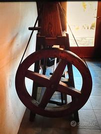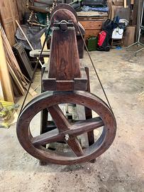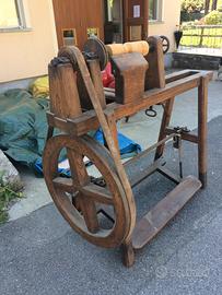 Antico tornio funzionante in legno di frassino, ideale anche per arredamento anno 1890