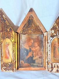 Vendo trittico apribile di Arte Sacra, molto vecchio ma non sono riuscita a risalire all'epoca esatta.