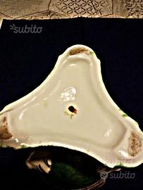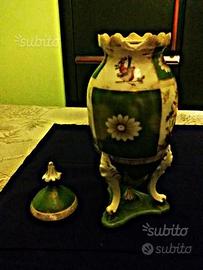 Gran vaso attribuibile alla nobile famiglia MEISSEN, non marcato ma facilmente riconducibile sia al periodo che alla manifattura per la forma e qualità della porcellana. Decorazioni rigorosamente appartenente ai pezzi Meissen della fine del '700, quattro facciate, due di fiori e due di stupendi raggianti fagiani. La natura è il genere molto sfruttato nei primi pezzi Meissen. Stato: SBIADITO nella doratura in alcuni punti, SBECCATURA all'orlo ( vedi foto). Altezza cm. 30. Epoca di appartenenza , fine '700 primissimi '800, significativo per individuare l'epoca, il perno sotto arruginito visibile dalla foto.E' un pezzo che se fosse integro sarebbe da museo delle ceramiche e porcellane e costerebbe sicuramente diverse migliaia di euro. Accetto una contro proposta ragionevole. Chi fosse interessato ad altri oggetti da collezione ( Swarovski, Murano, Lalique) modernariato, etcc... oltre a visitare il sito ( venditore PIERANGELO) mi può contattare al cellulare 368956400 anche con WhatsApp.. Non ultimo, ma altrettanto importante, oltre alle recensioni, opero con subito.it da oltre 10 anni.