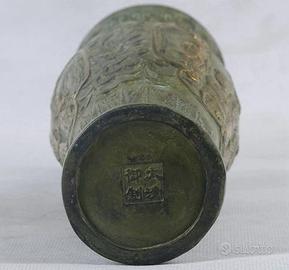 Antico vaso cinese in bronzo dorato - marchio Qian