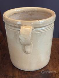Vendo antico vaso contenitore in terracotta smaltata, a 2 manici, degli inizi del ‘900.