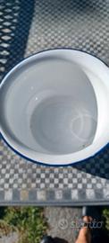 Antico vaso da notte smaltato, diametro cm. 22, con 3 piccoli segni usura (smalto saltato)