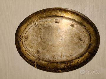 La sua forma ovale e le condizioni suggeriscono che si tratti di un oggetto vintage o antico, potenzialmente risalente agli anni '30-'70, utilizzato come vassoio da portata o decorativo.