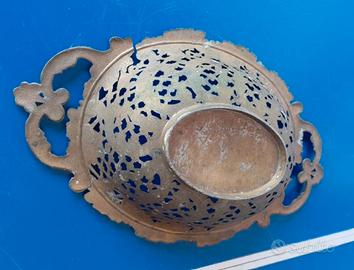 Bellissimo vassoio antico in ottone traforato.