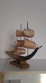 è un antico veliero trialbero tutto in corno comprese le vele con misure di tutto rispetto 43 cm la lunghezza da poppa a prua,