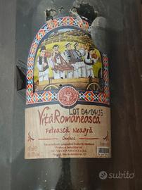 🍷 Possiedi un'autentica capsula del tempo, unendo storia, tradizione e design vintage! Questo non è un semplice vino, ma un oggetto da collezione unico e suggestivo: una bottiglia antica di Vino Romeno "Vita Romanesca Feteasca Neagra" che ha una data di scadenza del 2015, completa del suo affascinante carretto in legno che ne esalta il carattere rustico e artigianale. La bottiglia, sigillata e ancora avvolta nella sua pellicola originale, è un raro esempio di packaging d'altri tempi. Il carretto, ben conservato, è un pezzo di design che racconta una storia di tradizione e di cura dei dettagli.