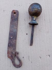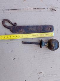 vecchio virchetto in ferro battuto con borchia in ottone usato nelle vetrine delle porte