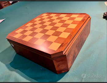 ANTICO SET gioco da tavolo portatile BACKGAMMON/DAMA realizzato in legno di acacia. CONDIZIONI: ottimo stato conservativo da COLLEZIONE o Idea Regalo DIMENSIONI: L38xh11cm CONTESTUALIZZAZIONE ideale: Villa d'Epoca, dimora storica, Chalet/baita montagna
