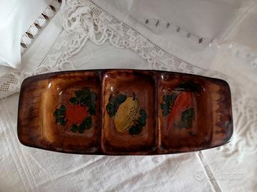 Antipastiera rettangolare 3 scomparti ceramica dipinta a mano. 36×15