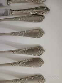 servizio di posate da 6 cucchiai coltelli e forchetta argentone queste posate sono in alpaca cioè definito anche come agendo tedesco