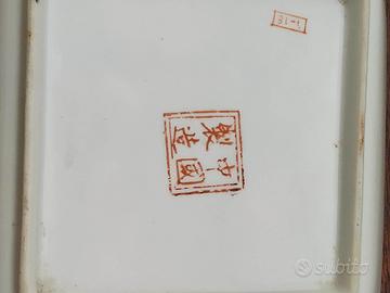 ANTIQUARIATO ORIENTALE Vassoio 15x15 originale MARCHIO CINESE ARCAICO PORCELLANA vendo a 40 euro