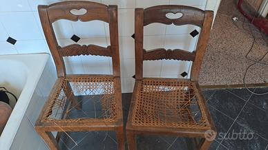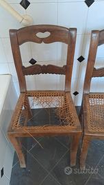 due sedie di antiquariato da impagliare, buone condizioni. una terza è da ristrutturare. tutte e tre le sedie iniseme ritiro no weekend