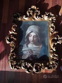 Cornice lignea intagliata con traccia di doratura originale di oro zecchino di buona fattura.