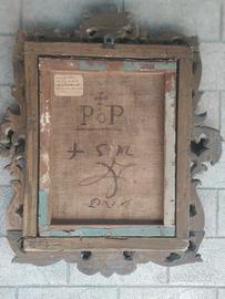 Iscrizione sul retro del telaio con attribuzione a Giovanni Battista Salvi detto il SASSOFERRATO.