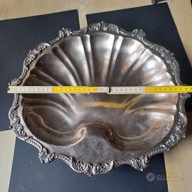 Antico Vassoio barocco conchiglia placcata argento pesante Royal English Wallace