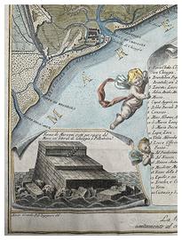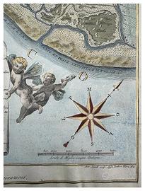 Incisa su disegno di Alvise Grandis, la maestosa pianta della laguna veneziana antica e moderna viene pubblicata da Teodoro Viero nel 1799 e dedicata a Gian Pietro Grimani (l’esemplare in questione non presenta la dedica, solitamente posta al margine inferiore).