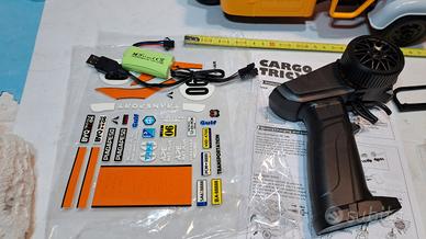 sponde apribili, luci led con frecce stop e retromarcia funzionanti, sterzo trimmerabile, doppia velocita' di guida, quando sterzate col radiocomando si gira anche il manubrio dentro, doppia velocita' di guida., manuale istruzioni e imballo originale.