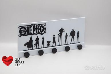 Appendi chiavi ispirato a One Piece, con le sagome della Ciurma di Cappello di Paglia. Un oggetto utile e scenografico, perfetto per dare un tocco anime a casa, in ufficio o nello spazio gaming.