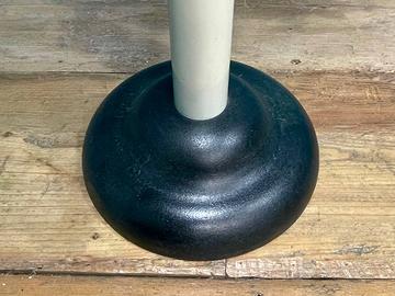 Appendiabiti in legno verniciato con pomelli plastici e basamento in ghisa.