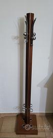 Vendesi elegante appendiabiti da terra (stender) dal design moderno e minimale, perfetto per ingressi, uffici o camere da letto. Il pezzo si distingue per la sua struttura a colonna quadrata in legno tonalità noce, rifinita con profili metallici e dettagli in acciaio cromato. Unisce in un unico elemento la funzione di appendiabiti e quella di portaombrelli, ottimizzando lo spazio con grande stile. Caratteristiche principali: Materiali: Legno massiccio/impiallacciato e finiture in metallo cromato. Appendiabiti: 4 bracci superiori dal design arcuato con pomelli sferici antigraffio. Portaombrelli integrato: 4 anelli metallici a metà altezza e base coordinata con fori di scolo in metallo. Stato: Ottime condizioni estetiche, solido e stabile. Solo lievi segni del tempo che ne testimoniano l'autenticità. Stile: Perfetto per ambienti moderni, contemporanei o per amanti del vintage/modernariato anni '70-'80. Dettagli Condizione: Usato – Ottime condizioni Colore: Legno scuro / Cromo