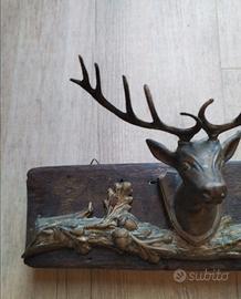 Questo oggetto è un Appendiabiti da parete vintage o un portachiavi raffigurante una testa di cervo.