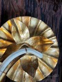 Applique artigianale in ferro con foglie e fiori multicolore, anni 50, Italia.larga 35, alta 30, sporgenza da parete 20 cm senza la lampadina, peso 500 gr. Attacco per lampadina E 14 non compresa- In ottime condizioni.