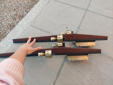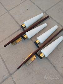 Vendo coppia di lampade da parete anni 50 della Stilnovo, materiale legno, ferro, ottone e vetro opalino, buone condizioni, una ha il legno segnato e una lampada ha 2 vetri che sono stati rotti (vedi foto). Altezza 70cm. Tenendo conto del difetto dei 2 vetri danneggiati ma del fatto che uno è totalmente integro e ben conservato chiedo 500€ per la coppia. Non faccio nessuno sconto, non spedisco. Ritiro presso il mio domicilio.