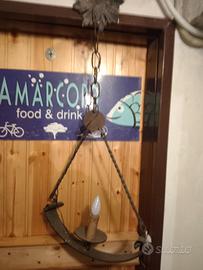 coppia di applique rustiche in stile medievale di ferro battuto e lampadario sempre in stile