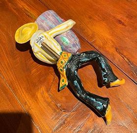 Applique/scultura in ceramica decorativa a smalto policromo. Design vintage, Messicano Otello Rosa per Ancora Venezia, anni 1950-1960, origine Italia, non ci sono difetti ma si possono apprezzare lievissimi segni di utilizzo. Dotato dei sui tasselli per essere appeso al muro.