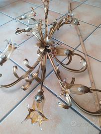 applique in ferro battuto sia da muro che da tetto otto punti luci e fiori in vetro di murano ambrato