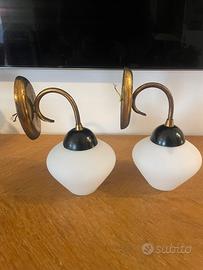 Coppia di applique vintage anni 50 in ottone con paralume in vetro opalino,conservate e funzionanti con solo lievi segni del tempo.
