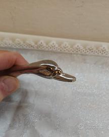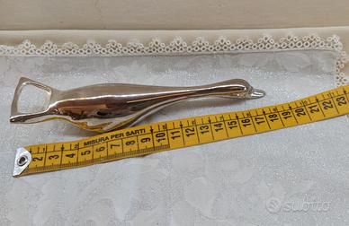 Particolare apri bottiglie da collezione. In metallo credo placcato argento. Particolare forma rappresentante un anatra. Condizioni generali perfette, solo qualche lieve alone.