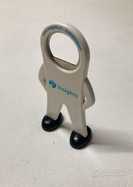 Si tratta di un apribottiglie promozionale in plastica a forma umana, personalizzato con il logo.