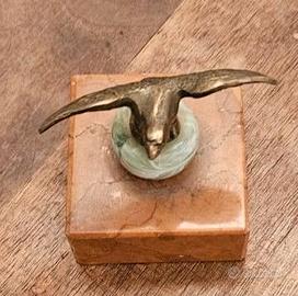 Aquila in Bronzo appoggiata su marmo rosa degli anni '50.